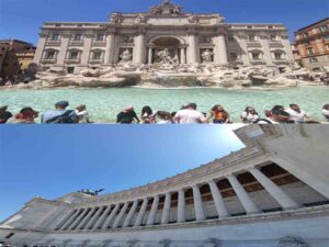 اما زود به سایه پناه بردم و رفتم وارد محله های قدیمی به سمت فواره Trevi Fountain.… شدیم